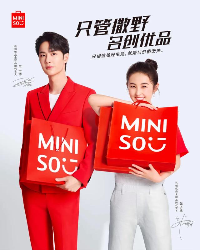 一个是名创优品,同时官宣王一博和张子枫为全球品牌代言人