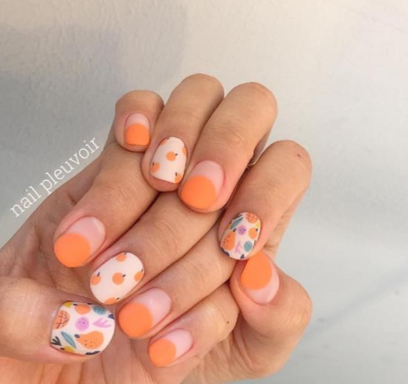 玫瑰色让再暗沉的肤色擦上它都会立即白出一个度!不过今年夏天在造型的变化上,你可以将红色甲彩刷淡做晕染,接着可以搭配些许奶白色搭配,甜甜粉粉的草莓俏皮造型,展现你满满的少女心!