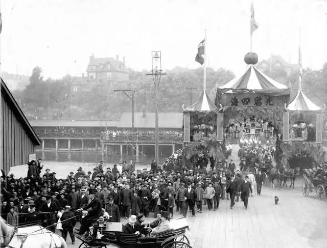 1896年,74岁的李鸿章奉慈禧太后之命,率领使团去俄国参加沙皇尼古拉二世的加冕礼。之后,李鸿章一行访问了欧美等国家。当年8月28日,李鸿章乘船抵达纽约。为了迎接李鸿章的到来,时任美国总统克利夫兰直接取消度假,纽约万人空巷,到处都悬挂着大清龙旗。
