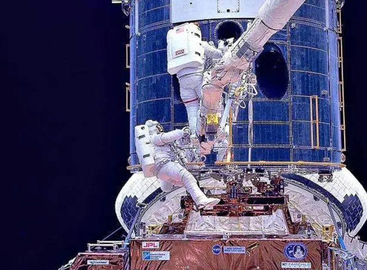 两名宇航员为哈勃“治疗近视”,图片来自NASA官网
