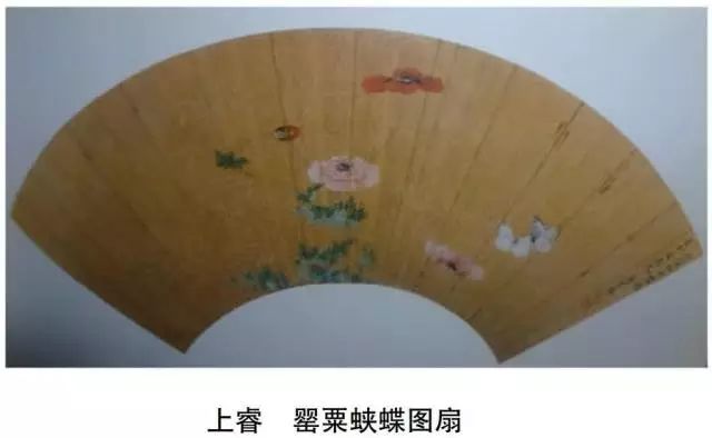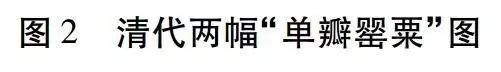 清代康熙年间还有三幅所谓的“单瓣罂粟”图(其中两幅见图2):上睿的“罂粟蛱蝶图扇”、文点的“罂粟图册”和恽寿平的另一幅“罂粟花图”。首先,恽寿平此图所画必不是罂粟科植物。画中有花六朵,其中五朵开花,花瓣三片,离生,一朵含苞待放但花梗向上,叶片小且羽状深裂,且图中无罂粟相关字样,图名疑为后人所加。其次,文点图采用墨青色颜料,难以辨别原花颜色。图中有花两朵:一朵含苞待放,枝头向下,符合罂粟特征;另一朵花开硕大,花单瓣,却有萼片两枚宿存,不符合罂粟花特征,或许是作者主观意象的反映,也未可知。再次,上睿画粉色重瓣一朵;红色花苞一朵但枝头上挑;红色四片单瓣一朵,但基部有深色斑点,类似东方罂粟。总之,此三图所画花卉均不能被确认为鸦片罂粟。不过,这并不能否定单瓣罂粟的存在。王象晋就讲,“八月中秋夜或重阳月下子,下毕以扫帚扫匀,花乃千叶。两手交换撒子,则花重台……若土瘦种迟,则变为单叶”。可见,明清时期的单瓣罂粟并非常态,而是栽培技术不得法导致的“劣”产品。