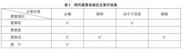 在中国,宋代开始将罂粟入药,主要是罂粟壳和罂粟籽,明以后增加了鸦片。在用作药材之前,五代十国时南唐《食医方》提出以罂粟米、人参末、山芋煮粥,用于食疗,可以“疗反胃不下饮食”。北宋开宝六年(973)编成的《开宝本草》首次将罂粟纳入药材之列,书中记载“罂子粟:味甘,平,无毒,主丹石发动,不下饮食”。《本草衍义》《证类本草》等医学著作对此予以认可。稍后,苏颂在《本草图经》中提到了罂粟的副作用,认为其“主行风气,驱逐邪热,治反胃,胸中痰滞及丹石发动,亦可合竹沥作粥,大佳。然性寒,利大小肠,不宜多食,食过度则动膀胱气耳。”其后,罂粟的应用范围逐渐扩展:方勺的《泊宅编》出现了“古方未闻”的罂粟治痢方;王贶的《全生指迷方》提出罂粟可以治“肌肉濡渍、痹而不仁”的肉痿。宋金对峙时期,南宋的谢采伯发现罂粟可以用于痔疮;金朝的刘完素将其与乌梅肉、桑白皮等配成“罂粟神圣散”治疗“久新日夜咳嗽不止”。元代王珪又以罂粟壳与干葛、黑豆、当归等药材配成“斗门散”,治“八肿毒痢,脏腑撮疼,脓血赤白或有五色相杂,日夜频并”等疾。明代李时珍是古代中医集大成者,他全面总结了罂粟的药用价值并分述其各部分的药性和功效。他认为罂粟米“甘平无毒,主治丹石发动,不下饮食”,还可“治反胃胸中痰滞,治泻痢,润燥”;罂粟壳“微寒无毒”,能“止泻痢,固脱肛,治遗精久咳,敛肺涩肠,止心腹筋骨诸痛”;罂粟苗“甘平无毒”,可“除热润燥,开胃厚肠”;从罂粟中提取的鸦片“酸涩温微毒,主治泻痢脱肛不止,能涩丈夫精气”。总体来看,中医主要用罂粟来治疗痢疾、咳嗽和积食三类疾病。