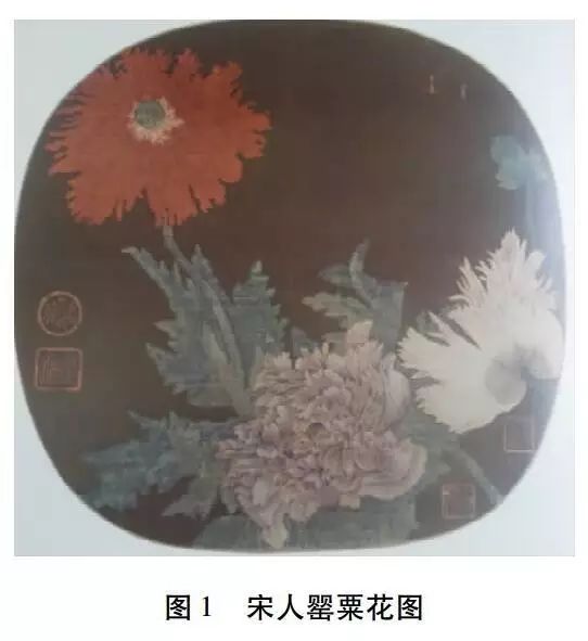 至北宋末年,随着中国花鸟画逐渐形成独立画派,一幅《罂粟花图》记录了当时的罂粟(见图1)。图中有花三朵,虽然具有鸦片罂粟的一般特征,如:雄蕊白丝黄药,子房绿色,无花柱;花梗长;蒴果椭圆;叶片基部心形,掌状浅裂,叶脉明显且突起等,但是与唐人描述有明显不同:花已然是重瓣千叶,三花分别呈正红、浅紫、粉白三色。这些变化说明罂粟在人工选育和杂交技术的推动下,向着观赏性更强的方向持续发展,不仅花色日渐丰富,而且花型也从单叶到多叶、从多叶到千叶不断演进。