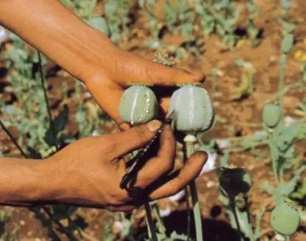 鸦片是切割罂粟蒴果后流出的汁液凝固而成的物质。通常情况下,鸦片罂粟中所提取的“鸦片”多与袂康酸结合成盐而存在,分别为:(一)吗啡生物碱:吗啡、β-可待因、可待因、蒂巴因;(二)丽春花碱生物碱:粉绿罂粟碱、罂粟红碱E、罂粟红碱C、罂粟红碱D、罂粟红碱B;(三)原阿片碱生物碱:β-别隐品碱、隐品碱、延胡索丙素;(四)原小檗碱型生物碱:异种荷苞牡丹碱、斯氏紫堇碱;(五)苄基异喹啉生物碱:罂粟碱、网叶番荔枝碱、半日花酚碱甲醚、半日花酚碱、可旦民碱、亚美罂粟碱、杷拉乌定碱;(六)苯酞异喹啉生物碱:罂粟壳碱、α-那可汀、β-那可汀;(七)异喹啉生物碱:四氢非洲防己碱、氢化可他宁碱;(八)那碎因生物碱:那碎因;(九)阿朴啡生物碱:异波尔定碱;(十)原阿朴生物碱:(S)-光千金藤定碱。其中,吗啡被认为是反映鸦片特性的最重要的生物碱,占总重量的4—20%;可待因占总重量的0.5%—3.5%;蒂巴因占0.2%—2%;罂粟碱占1%—2.5%;α-那可汀占2%—13%。不过,罂粟品种差异,甚至是不同的采集存储方法及土壤、气候等因素,都会使鸦片成分发生变化。如印度东部巴特那产的鸦片中吗啡含量为3.98%,α-那可汀含量为6.36%;印度西部麻洼产的鸦片中吗啡含量为4.61%,α-那可汀含量为5.14%;土耳其士麦那产的鸦片中吗啡含量为8.27%,α-那可汀含量为1.94%。