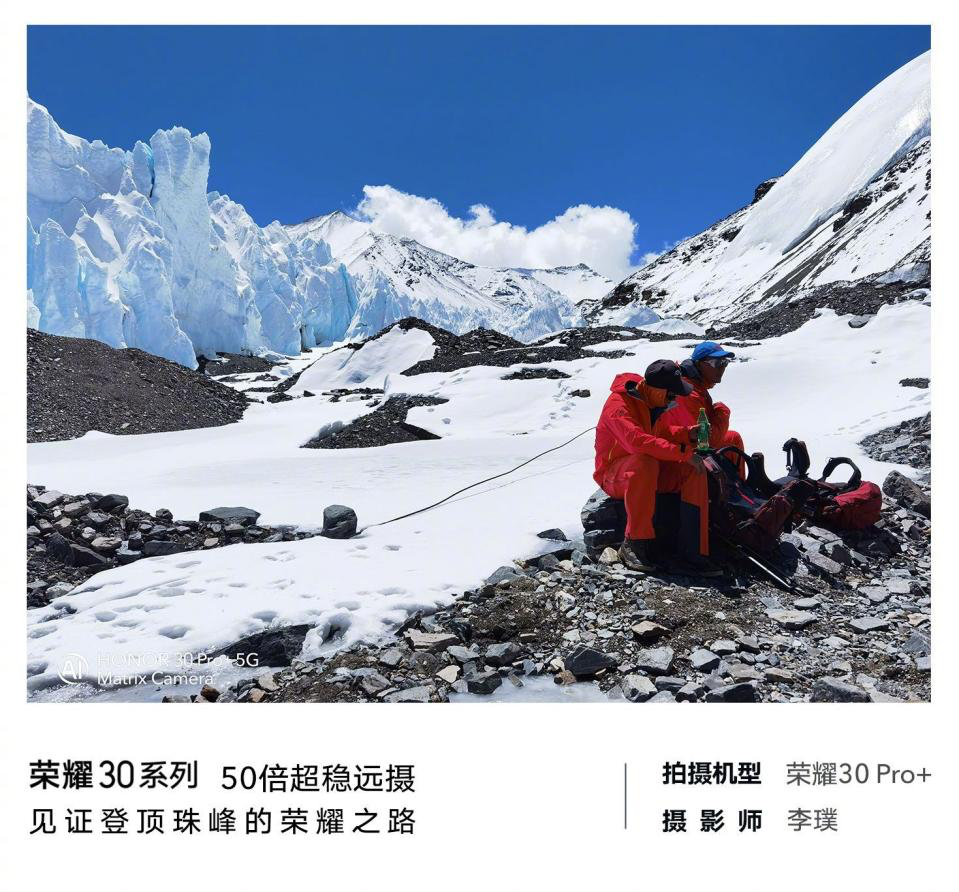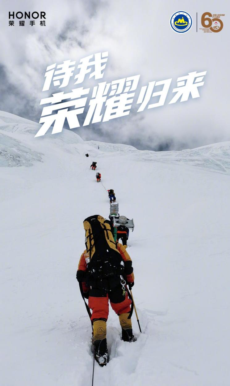 在登顶珠峰60周年之际,中国国家登山队携荣耀X10再次集结,向峰顶发起冲刺,荣耀手机作为本次珠峰攀登活动唯一指定手机,将利用强大的产品力和5G通信力与中国登山队合作,共同冲顶世界之巅。早前,中国登山队教练李富庆已经在珠峰6500米处用荣耀X10手机和荣耀总裁赵明进行了5G连线回传。