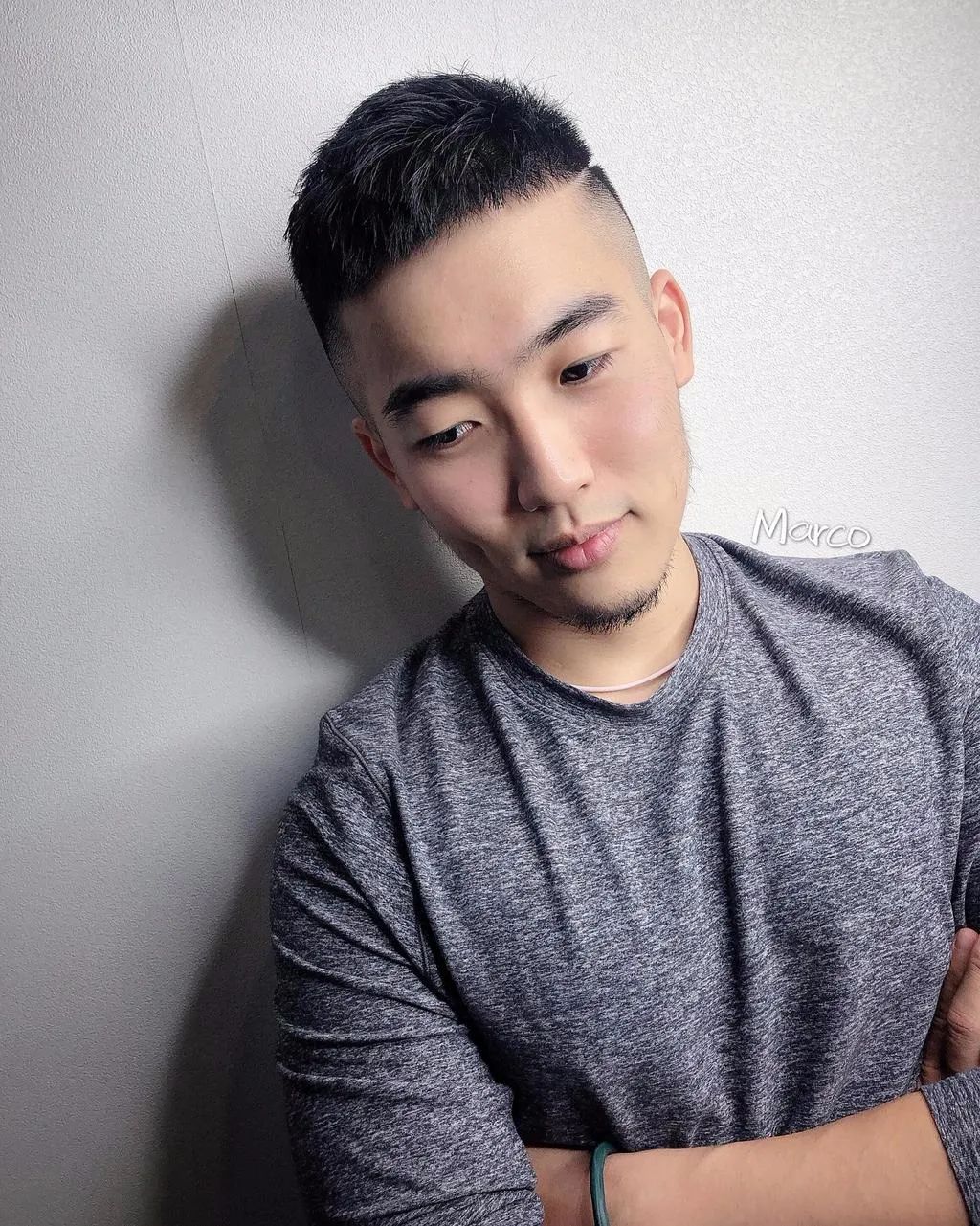 圆弧寸头加上发线疤痕刻,露出脸型稜角与耳朵线条,男人味立马大飙升!