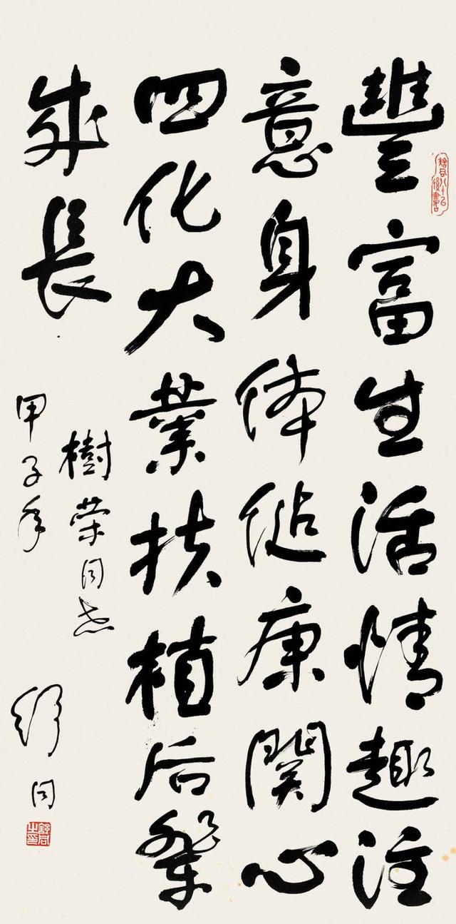 启功的书法,大家更熟悉了。他的书法有什么特点?首先是结体,挺拔秀美,比较符合大家伙的审美,属于人见人爱的那种类型。另外呢,启功的线条也是比较有力量和韧劲的,就像是一节一节的竹竿一样。