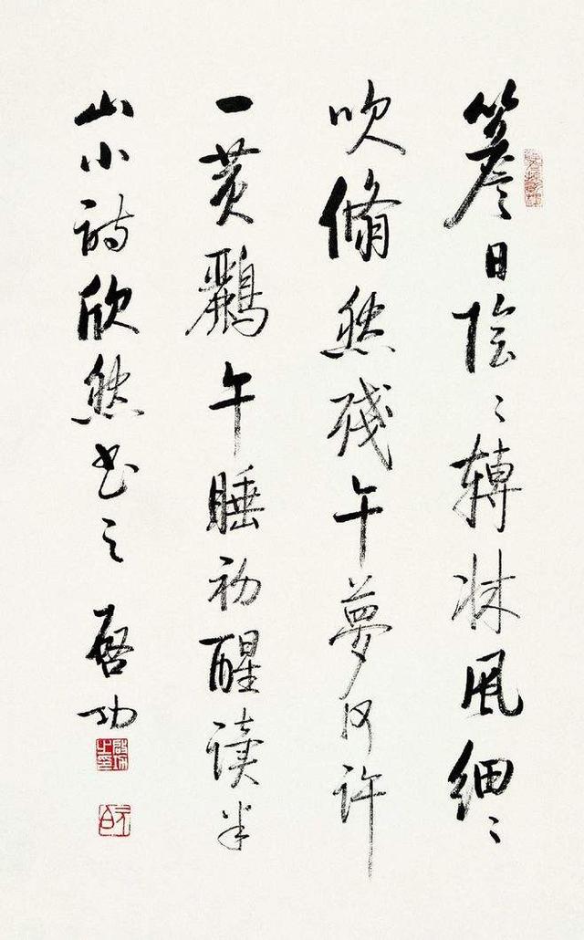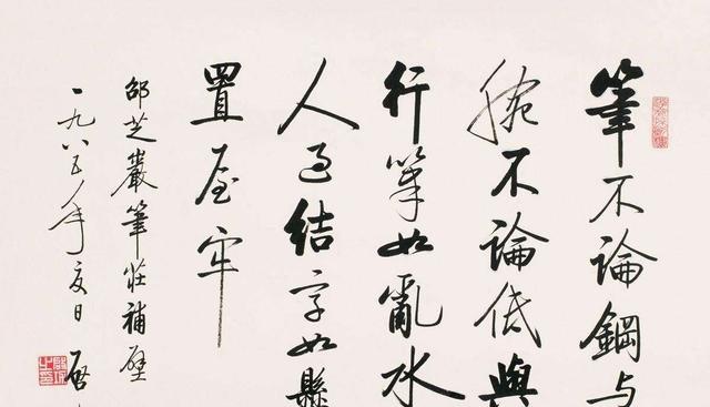 启功的这种线条是怎么炼成的?这和他取法前人有关。熟悉启功的朋友都知道,启功常年坚持临写柳公权的《玄秘塔碑》,不求其他,只为得到那种线条的骨力。总体来说,启功的用笔变化不那么多,在线条方面,确实是大家级别的表现。