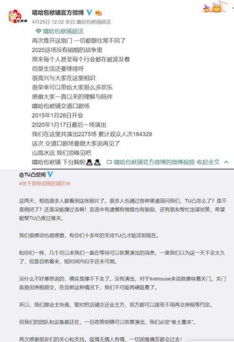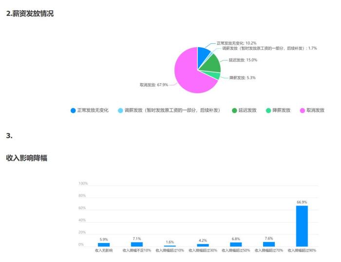 4月,山西戏剧网曾发布《新冠疫情对山西戏剧工作者从业影响调查报告》。报告显示,戏剧从业者收入降幅明显,仅10.2%的从业者薪资正常发放,取消发放薪资的达67.9%。很多从业者纷纷转行,有的还跨界去送外卖。而在近期,北京的嘻哈包袱铺交道口剧场、广州的TU凸空间都陆续宣布关门歇业。