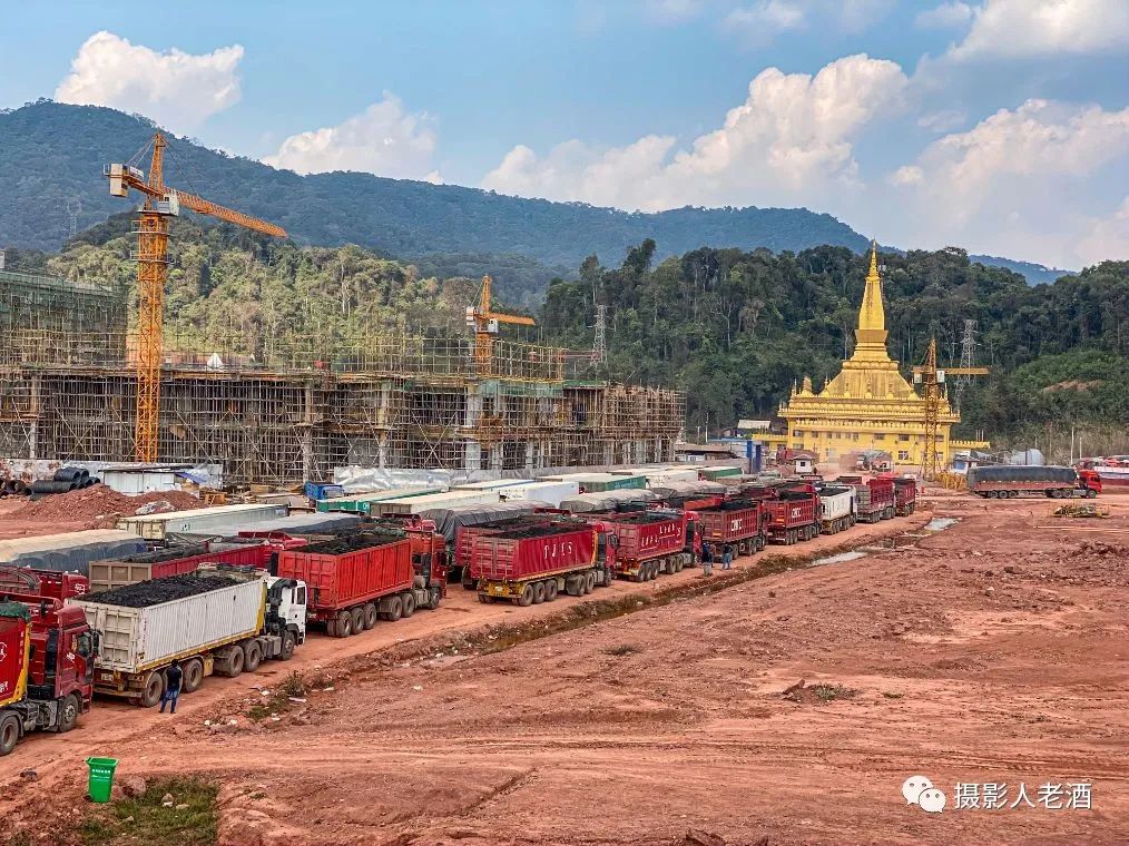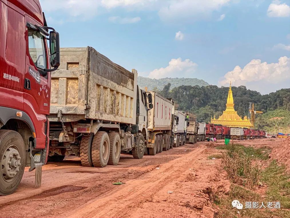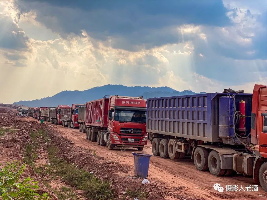 站在旁边的山坡上可以看到,这些排队的大货车基本都是运载着煤炭。老挝是一个经济非常落后的国家,几乎没有什么工业,能够出口到国外的商品自然只能以原材料为主了。