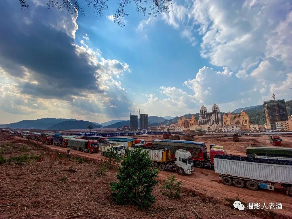 磨丁口岸正在大搞基建,经历这翻天覆地的变化,中老贸易量的增长显然比磨丁经济特区的发展来得还要快。口岸的基础设施还没有建好,而两国之间的贸易总额却每年都在大幅增长,所以就经常会出现了大货车排长队的现象。