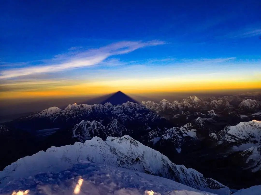这个星球上最高处 珠峰的影子如同金字塔般投在大地上