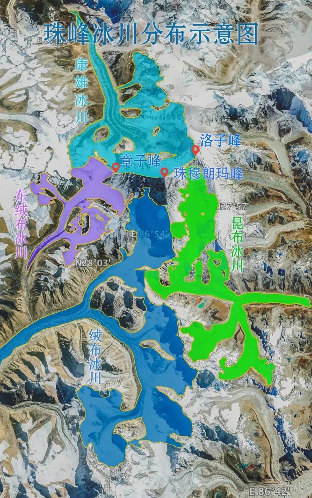珠峰冰川分布图