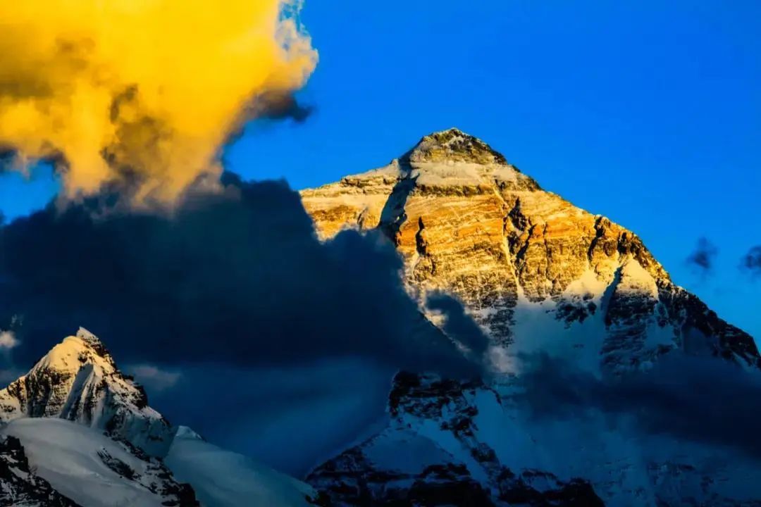 珠峰巨大的山体上
