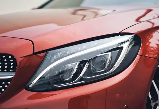 C级的头灯造型类似S级,内部一样有LED日行灯,而这次试驾的C300标配智能LED头灯,从进气格栅开始延着引擎盖二侧一直到前档A柱的线条衬托出C级刚毅的一面。