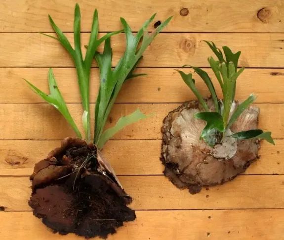 鹿角蕨不是养在花盆里的,而是固定在木板上,可以悬挂在墙上养护,不会占据太大的空间。养护鹿角蕨是要保持50%以上的空气湿度,环境要通风,常年温度维持在10度以上。鹿角蕨固定在木板上的时候,要覆盖一些水苔。