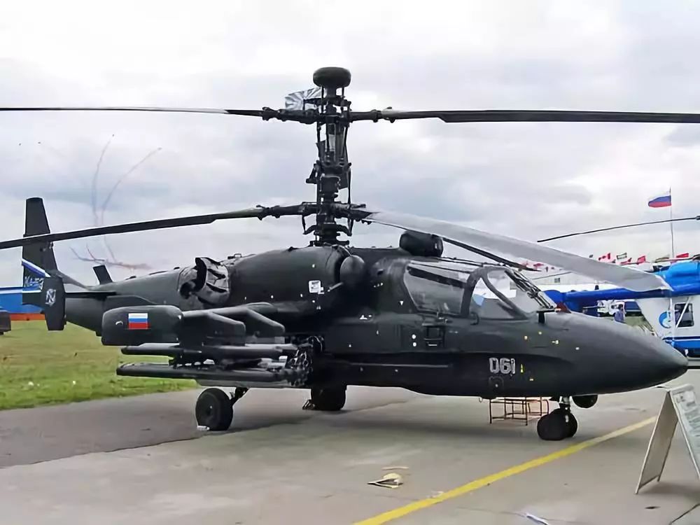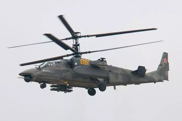 5.俄罗斯共轴反转双旋翼式卡-52武装直升机。
