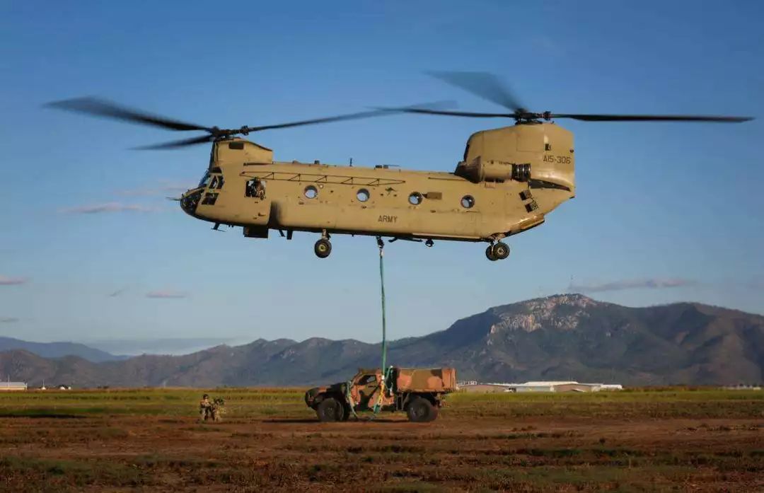 2.美国纵列双引擎双螺旋桨全天候多功能中/重型运输直升机CH-47。