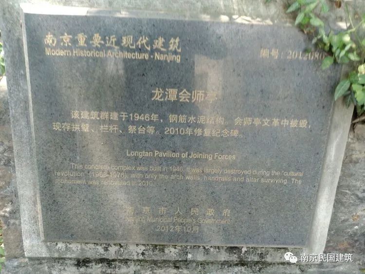 1946年,白崇禧任国防部长时下令在战场旧址建亭纪念,次年3月建成官衙式仿古建筑群。纪念亭1946年由中央大学教授徐中先生设计,1947年建成。今天我们从保留下来的整个建筑的实物来看,当年的纪念建筑并非一座纪念亭。