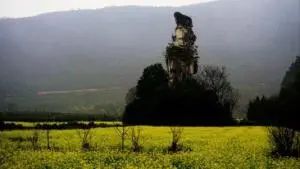 进入国家级旅游风景区万峰林入口,放眼西望,群峰环绕着一座最为矮小的岩溶孤峰——将军峰。