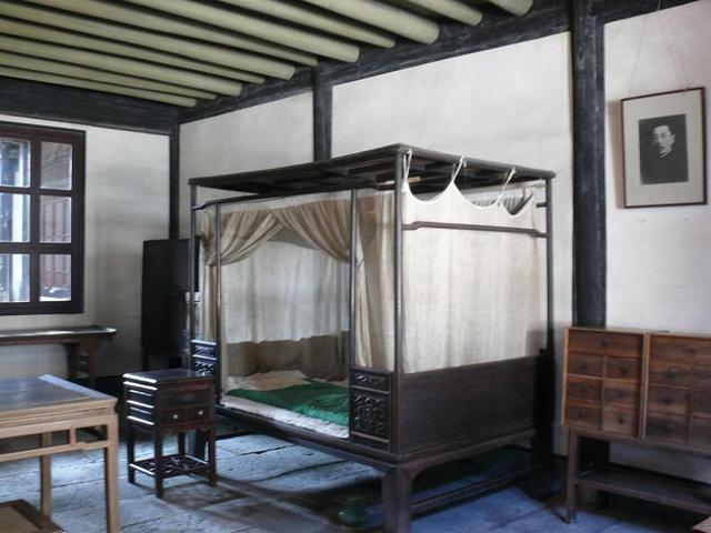 鲁迅住的房间,也是木架子床,还有蚊帐,边上有桌子椅子板凳,窗户采光也好,下面有痰盂,铺着石板的房间,一尘不染,在当时的鲁镇,算是收入不错的人家了。鲁迅给父亲买药,出入当铺,后来家道中落。