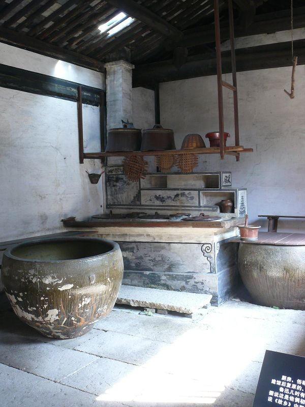 这个就是厨房了,有面瓮,米缸,水缸,还有醋缸,酒缸,锅碗瓢盆,杯盘碗盏,筷子等等。有点像宰相刘罗锅家的厨房,采光也很好,摆放的井然有序,鲁迅在故乡一文中,对这里有过记忆。