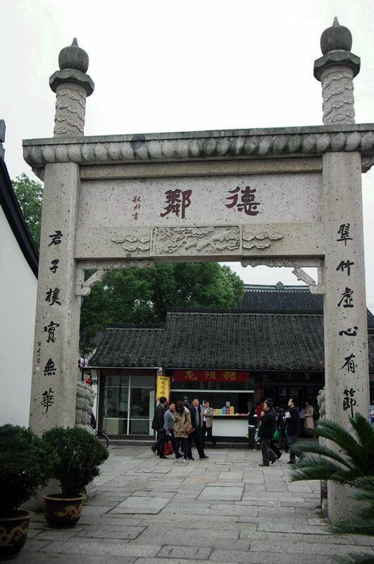 在绍兴市越城区,鲁迅中路上有一家“三味书屋”,就是鲁迅先生从十二岁到十七岁时读私塾的地方,就在都昌坊口。这是街边的牌坊,上面两个字,德邻。翠竹虚心有节,君子朴实无华。