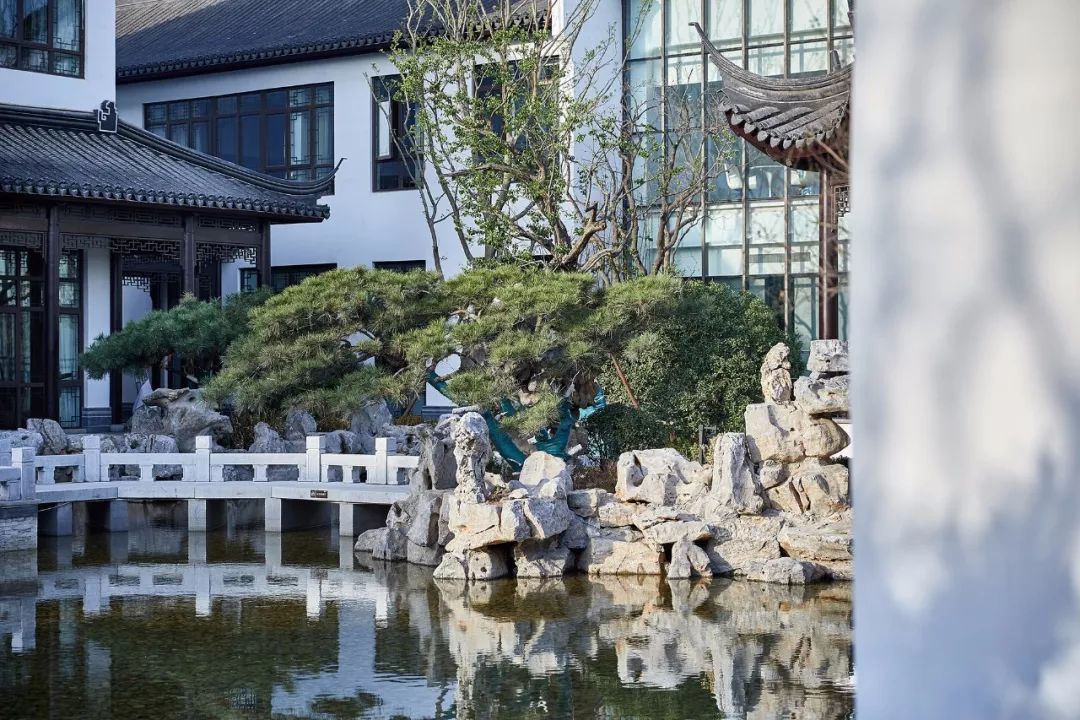 在项目的设计中,设计师遵循了中国园林讲究“舒处之去由,察水之来历”,谨遵“虽由人作,宛若天开”的法则:水系无论大小,必曲折有致。将江南园林“聚则通阔,散则萦回”演绎的淋漓尽致。
