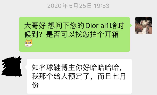 在五月底时,猿猿曾向确定能拿到 Dior AJ1 的大哥询问情况, 大哥表示这双鞋将在七月到手 。