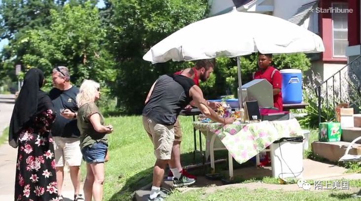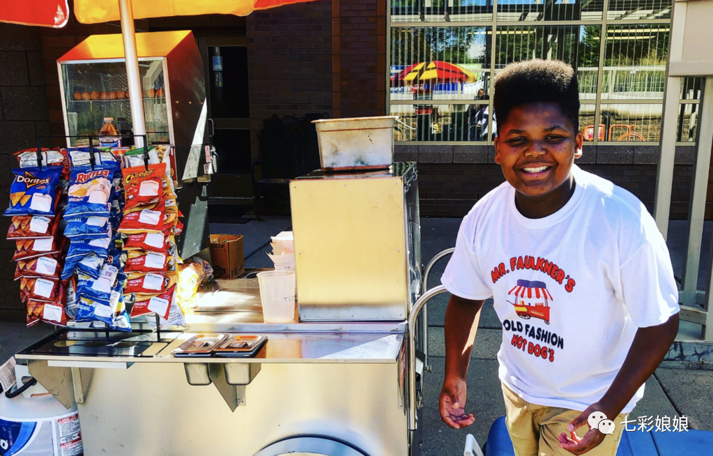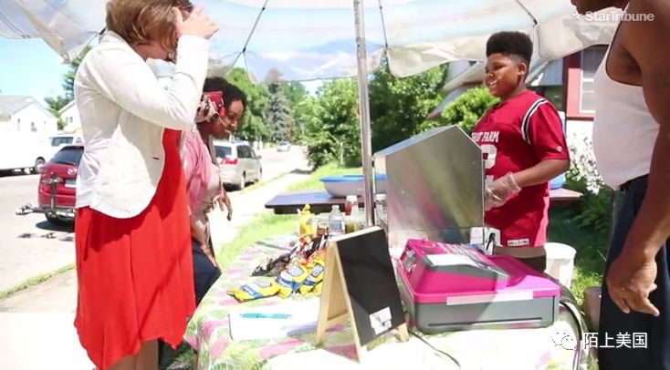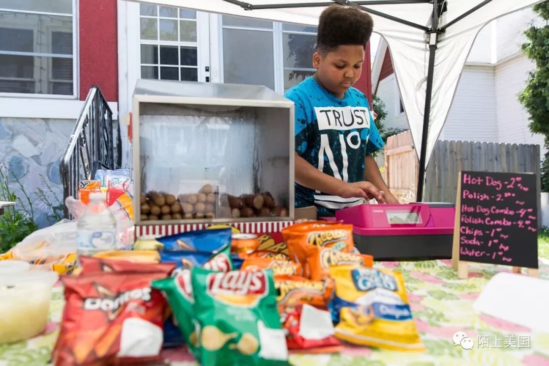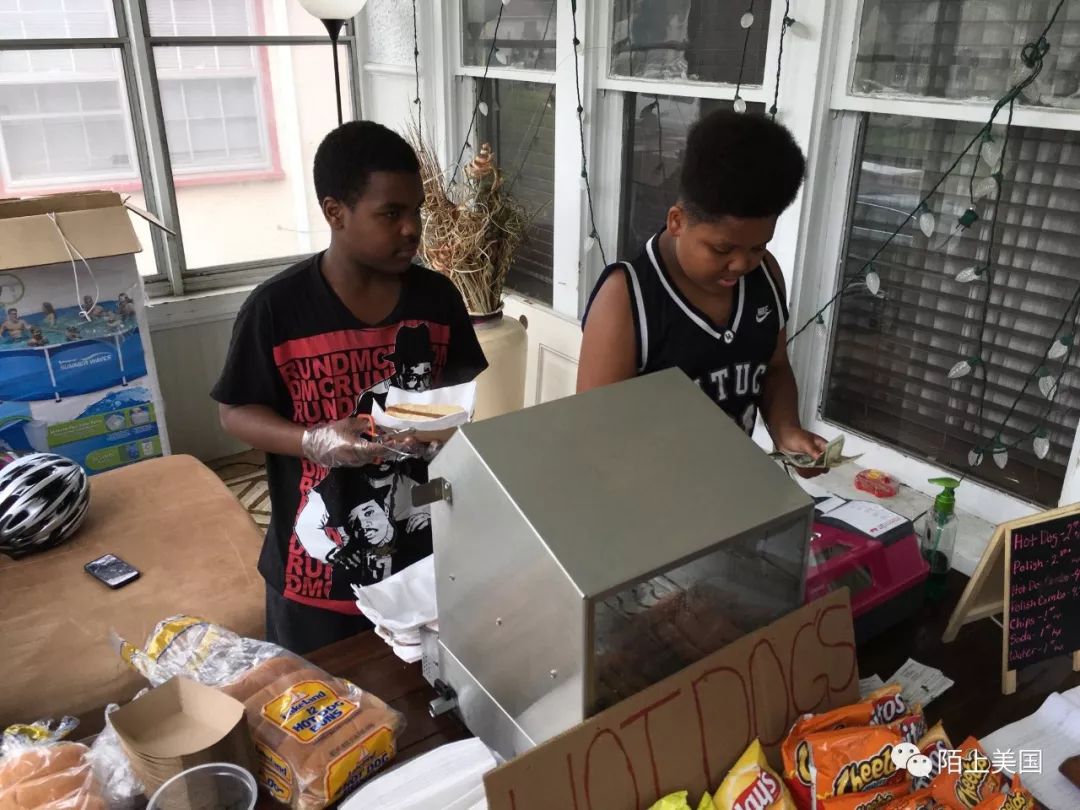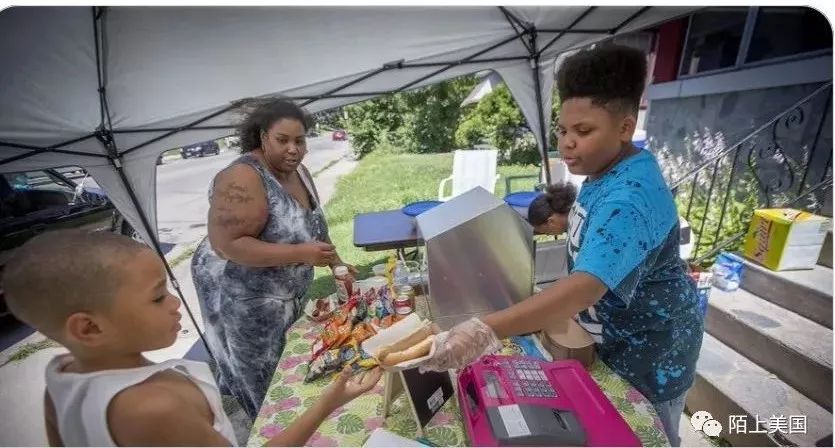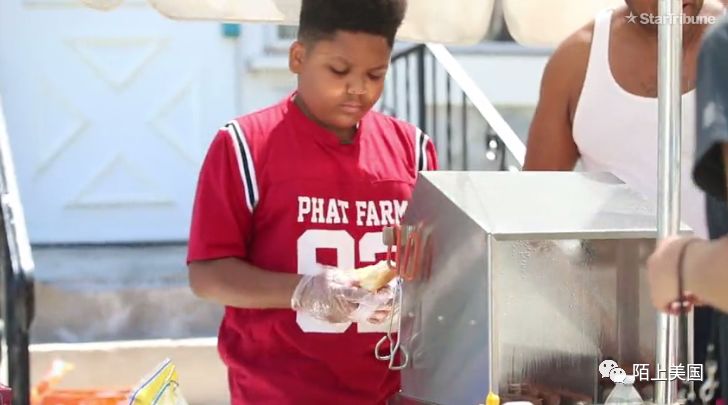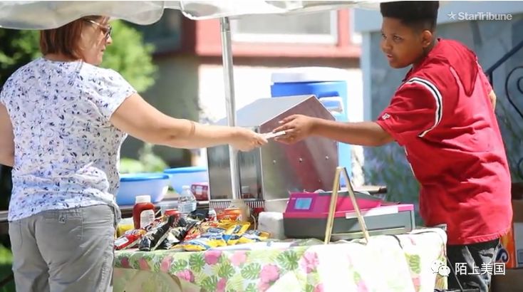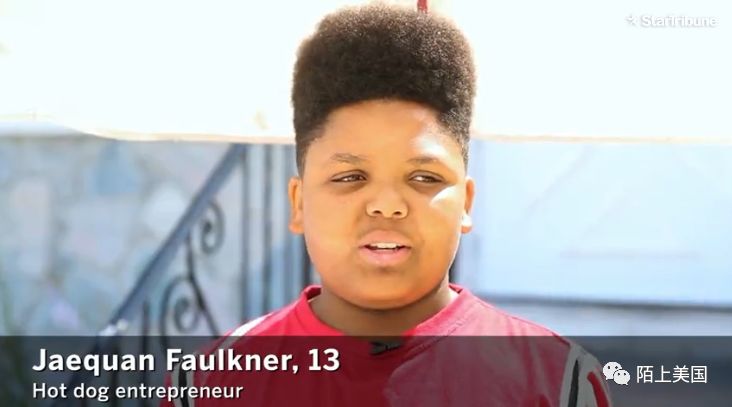 美国明尼苏达州明尼阿波利斯的13岁少年Jaequan Faulkner,2018年暑假开始后,在自家门前开了一个小食品摊,卖热狗、饮料、小零食等,兴致勃勃地走上地摊之路。