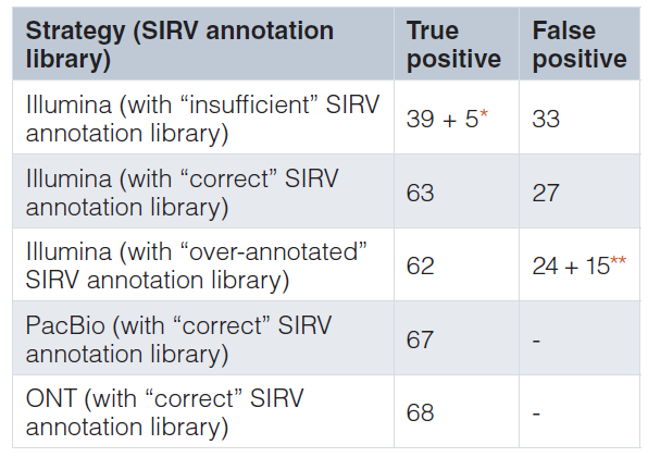*在“insufficient ”的SIRV注释文库,其中有25种isoforms未被注释但表达。在这25个isoforms中,有5个isoforms在Illumina测序平台被检测到。
