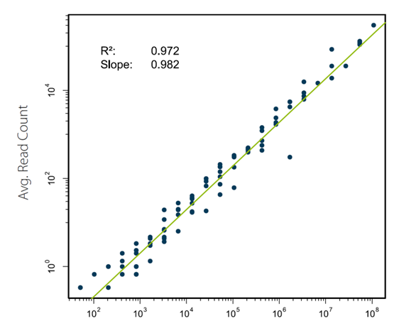 图6. QuantSeq-源于ERCC reads数与给定的input间存在极好的关联性