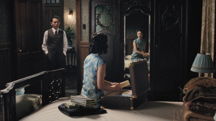 除此之外,《色戒》中,卧底女特务王佳芝在易先生家,上楼给易太太拿香烟坐在床边打开Louis Vuitton手提古董箱。