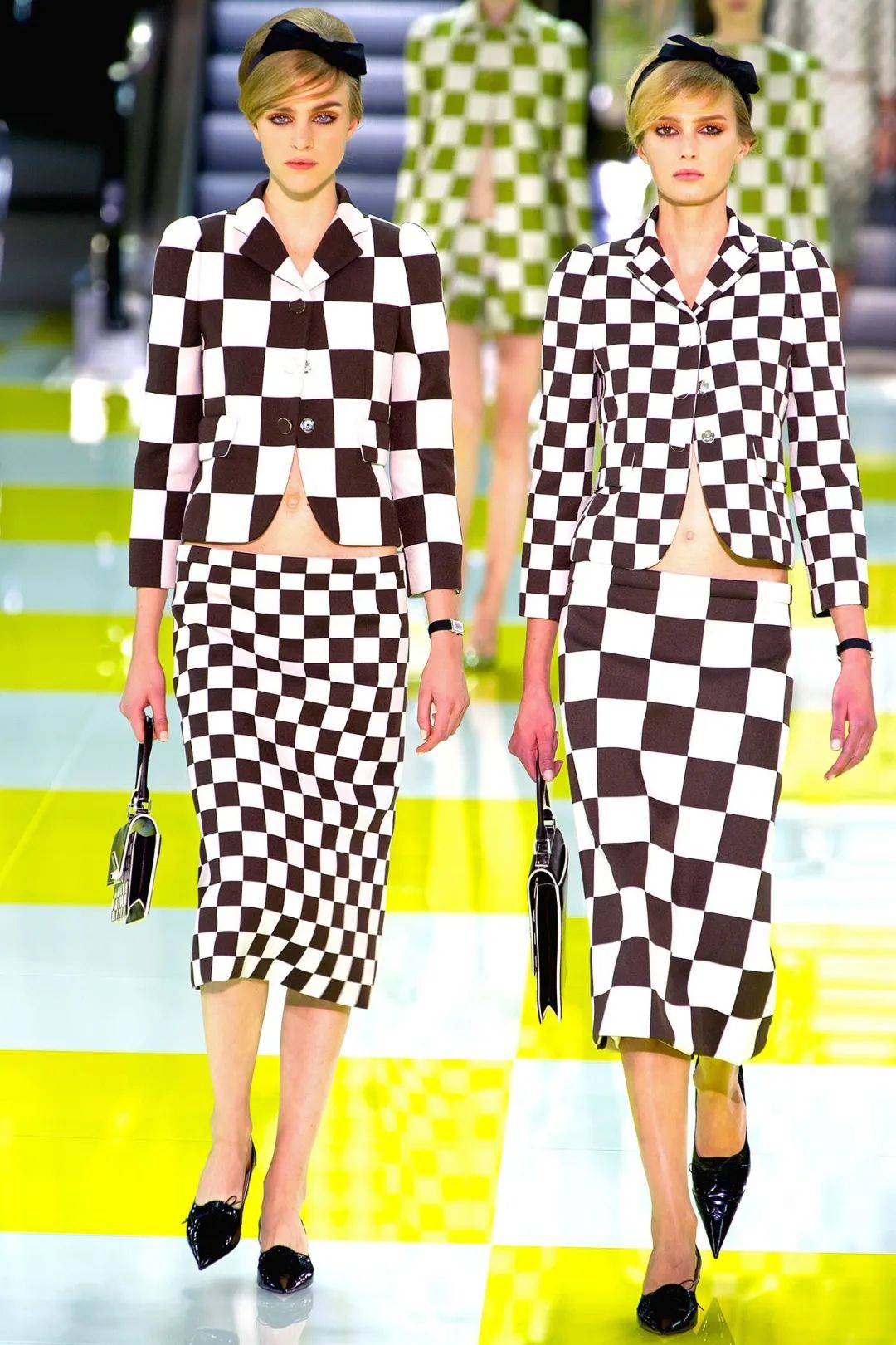 我记忆犹新的是Louis Vuitton 2012 Spring RTW,经典方格Damier之后在Marc Jacbos手下,化作一场空前绝后的精彩大秀,整场秀连同秀场的布置设计都用不同颜色及大小变化的Damier图案。