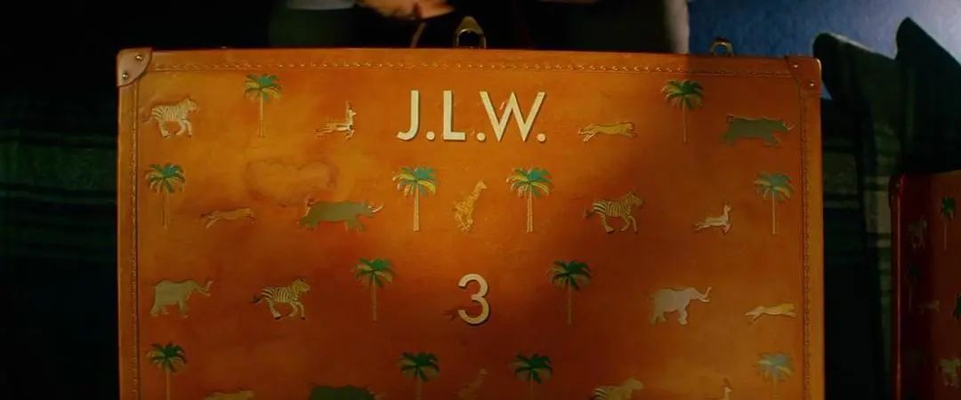 以黄色皮革为基调,绘制了长颈鹿、大象、斑马、犀牛、棕榈叶等具有地域特色的动植物纹样,还有以片中主角们的父亲名字缩写的字母J.L.W。
