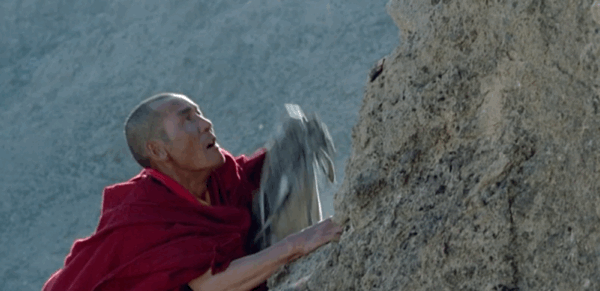 当看到一个个穿着血红僧袍的僧徒在冒险给战士递送军火的悬崖上被击落时;