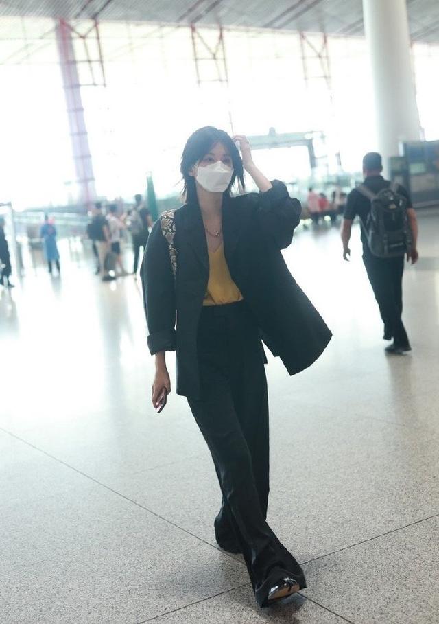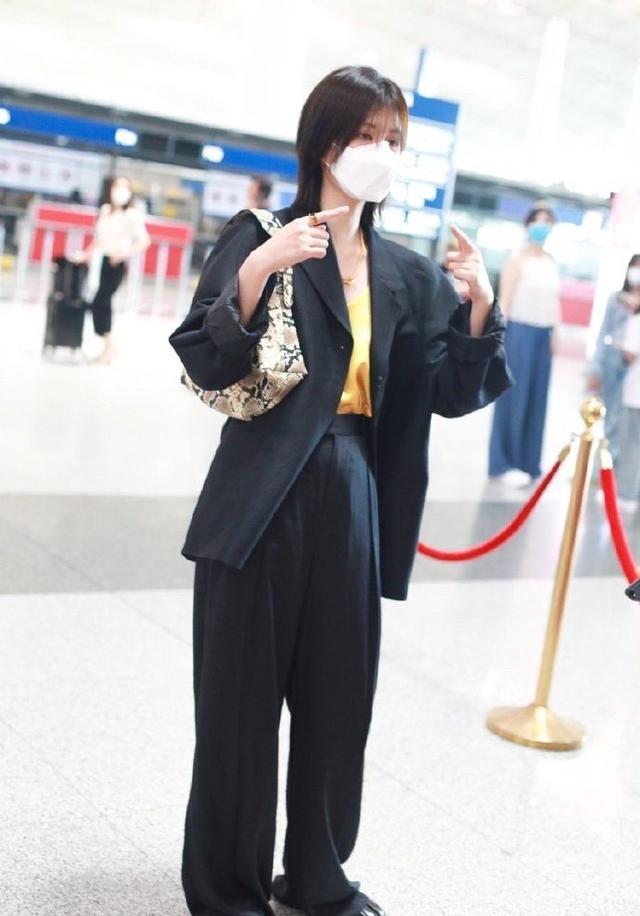 大家会发现最近两年时尚圈特别流行西装,各种款式的西装受到了大家的关注,而且西装的搭配方案也特别的丰富,无论是搭配牛仔裤还是阔腿裤都非常的显瘦,这一次的乔欣就为自己选择了黑色的西装,搭配了黄色的内搭。展现出了满满的层次感,下半身搭配了这一种黑色的西裤,更是呈现出了干净利落的感觉,增添了满满的高级感。