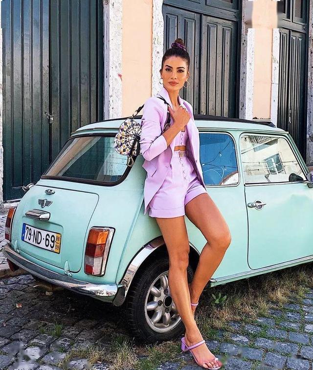 香芋紫西装外套与内搭的同色连身裤,这种同色系穿搭是最不会出错的搭配,也是很多妹子们都喜欢的穿搭。连身裤是短款的造型,穿起来显得腿长又显高,矮小MM们也可轻松上身,不会有压身高的担心。而脚上搭配的依旧是香芋色的凉鞋,这样子整身的色系一致,穿起来也显得整个人明艳动人。