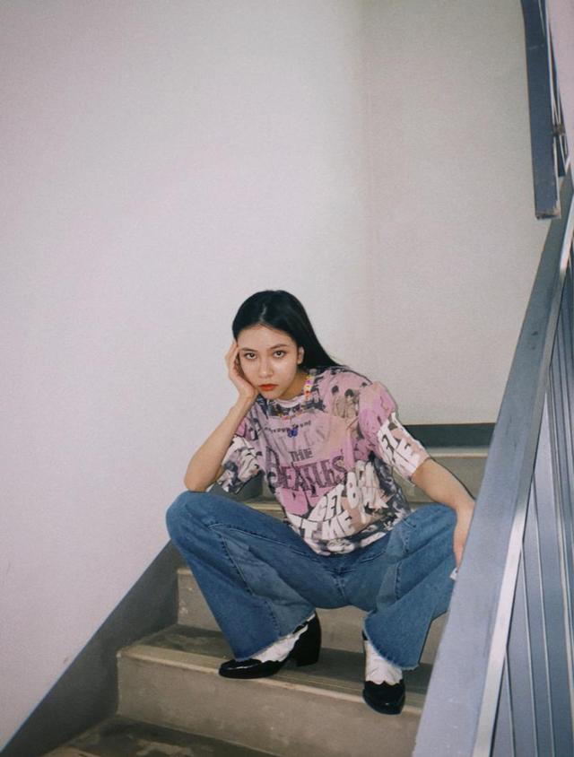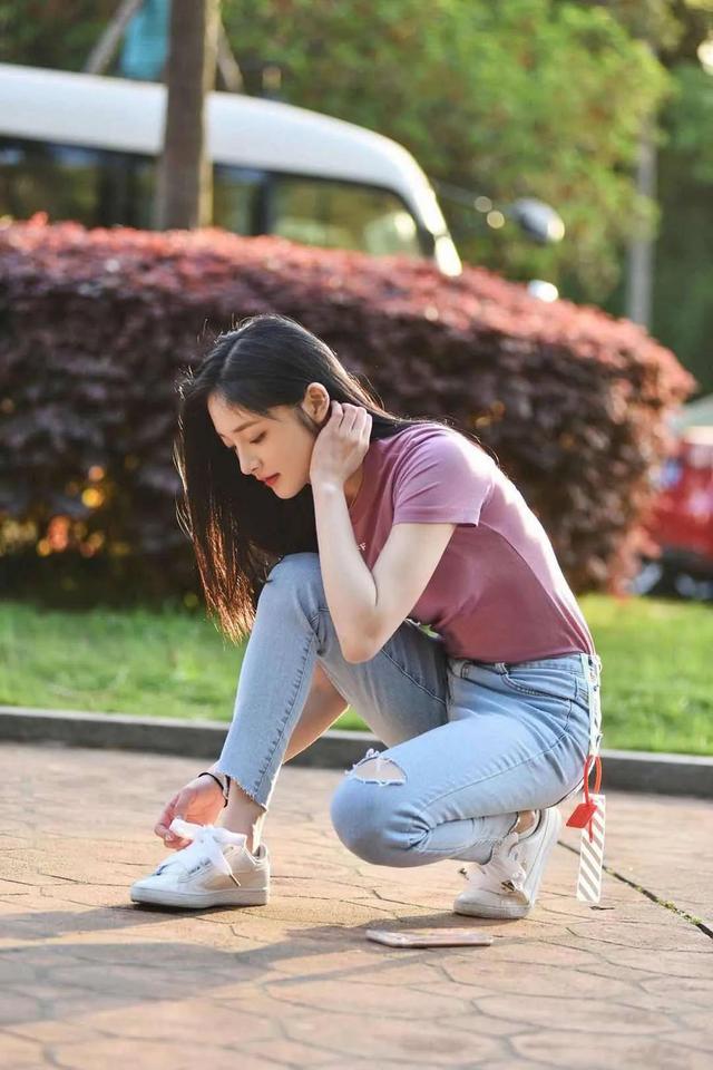 T恤衫在夏天出场率是极高的,而选对了颜色你的穿搭就成功了一半。看看这件香芋紫T恤衫,与经典的破洞牛仔裤搭配起来,显得很般配,且穿起来也流露出活力青春的模样,没有沉闷感,再搭配上小白鞋,与这个夏天配一脸,好有青春靓女的模样。