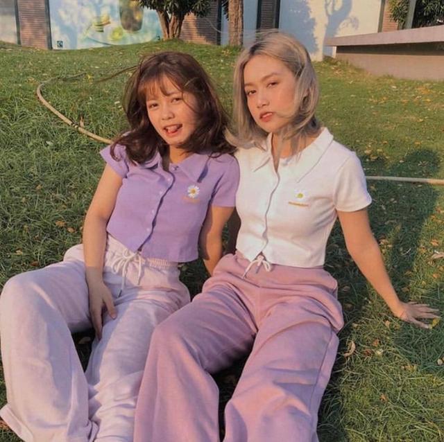 香芋紫的小衫与白色长裤搭配起来,清新感百分百,裤装是束腰松紧设计,穿起来简单便捷。而另一组的穿搭只是将上下身的色系掉了一个个,款式什么的都一样,展现出满满的青春气息感。这样的穿搭作为闺蜜装穿起来,显得极为的合拍的。