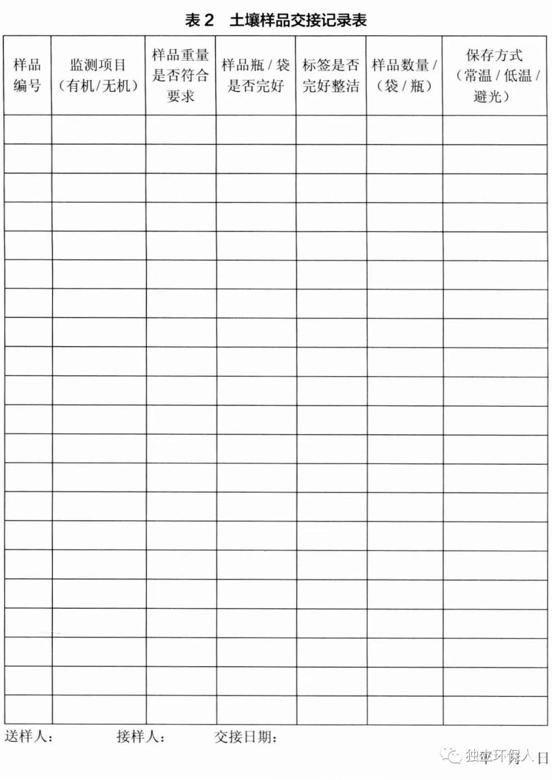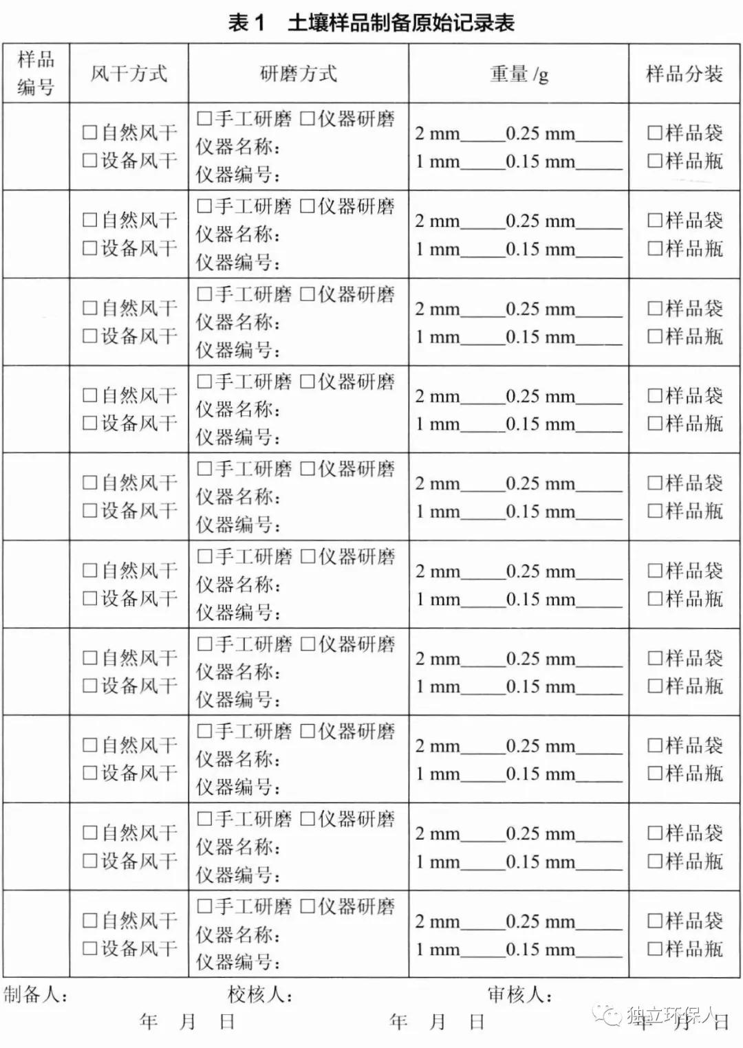 记录表格包括:土壤样品制备原始记录表(见附表1)和土壤样品交接记录表(见附表2)等。