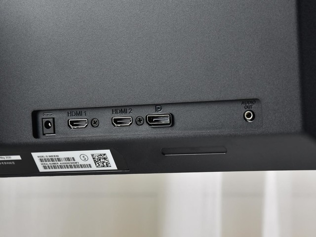 功能方面,这款显示器使用支持100mm的上下高度调节和-5~20°的俯仰角调节的支架。让你找到最适合自己的观看角度。同时支架还提供集线功能有助保持桌面整洁有序。接口则提供了两个HDMI接口、一个DP接口和一个音频输出口,方便多设备同时连接使用。