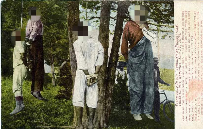 施暴者从未被追究法律责任。在一些州,年轻白人男性甚至会将围观黑人私刑作为成人礼的考验,他们还会将黑人尸体作为合影留念的背景,那些麻木冷血的面庞,至今留存在历史照片之上。