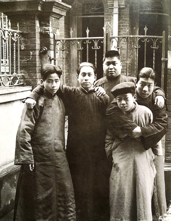 杭稚英自立门户在闸北鼎元里开设画室后部分成员合影,左起:李慕白、王祥文、王松塘、宋允中、李仲青,摄于1930年代初。