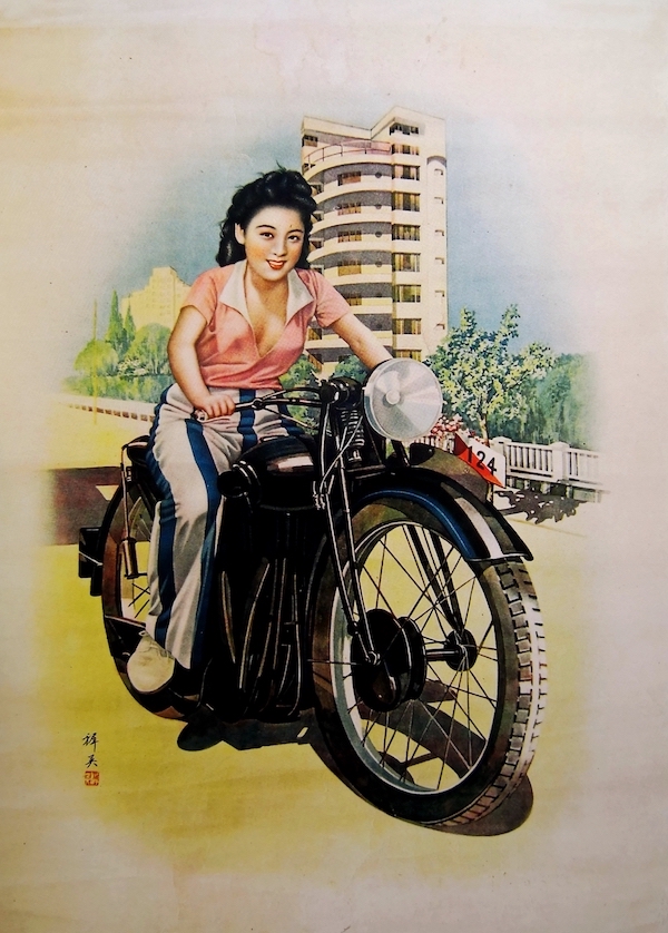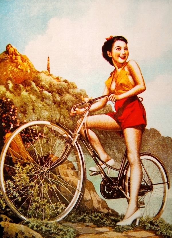 杭稚英绘《骑自行车的少女》广告画
