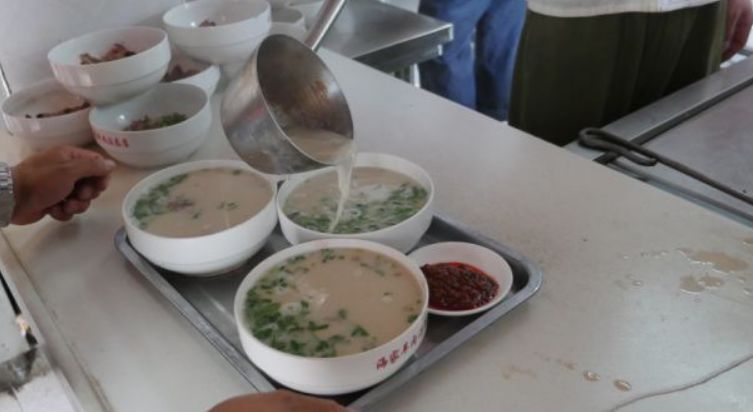 三里庄羊肉汤是典型的“砂锅羊肉汤”,熬好后盛出来不再续水,熬多少就是多少,卖的都是原汤,从开汤第一碗,到最后一碗味道都是一样的,每一碗都是最浓郁纯正的羊肉香气。这也是砂锅羊肉汤和敞锅最大的区别。