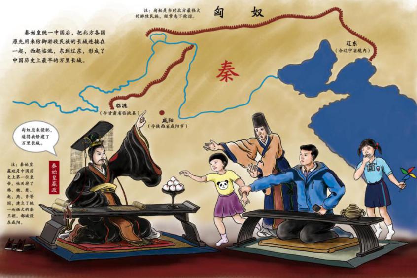 连达:我和女儿们一起看过很多书和电影,刚刚问她们最喜欢哪本书,她们竟然异口同声说最喜欢我给她们画的绘本《长城》。因为这本书,我带着她们俩学习长城知识和实地参观万里长城,里面还创意性地画了我带着女儿们与秦始皇和明成祖对话的场面,她们觉得特自豪,还曾经带去学校给同学们炫耀过。