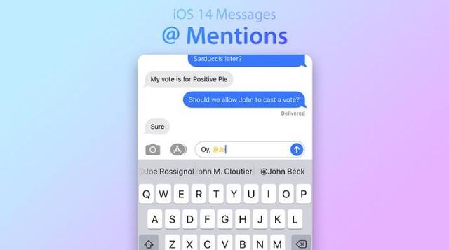 iOS 14中消息中@mentions的模型