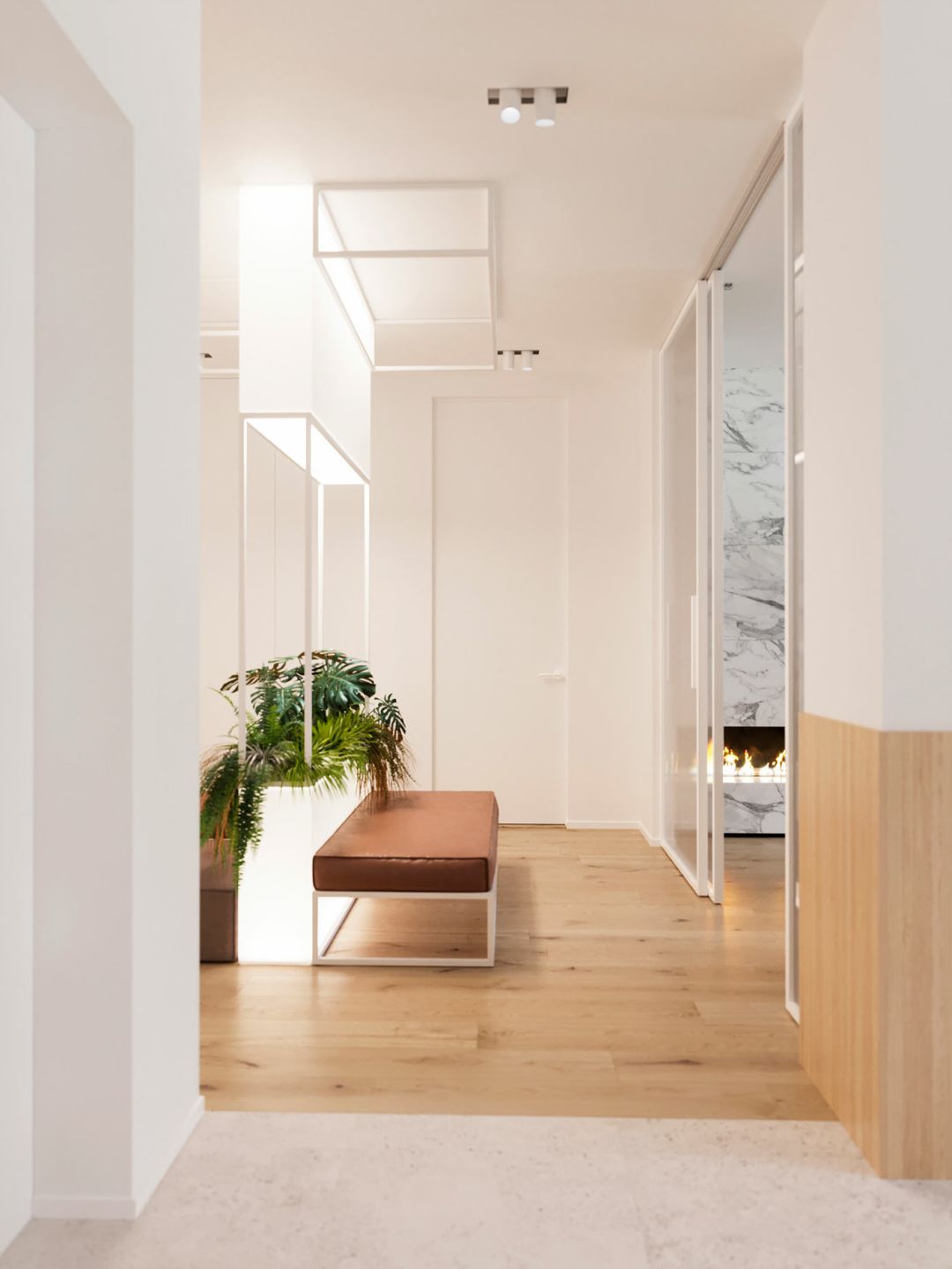 将门与墙面设计成一样的背景颜色,看上去门被“藏”起来了,削减了门的存在感,达到视觉整齐统一的效果。