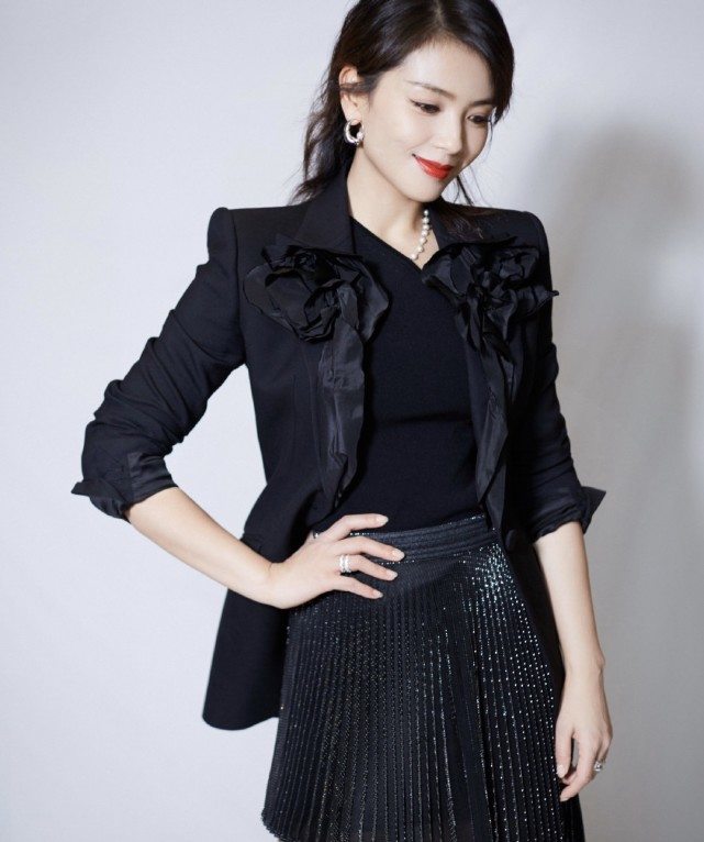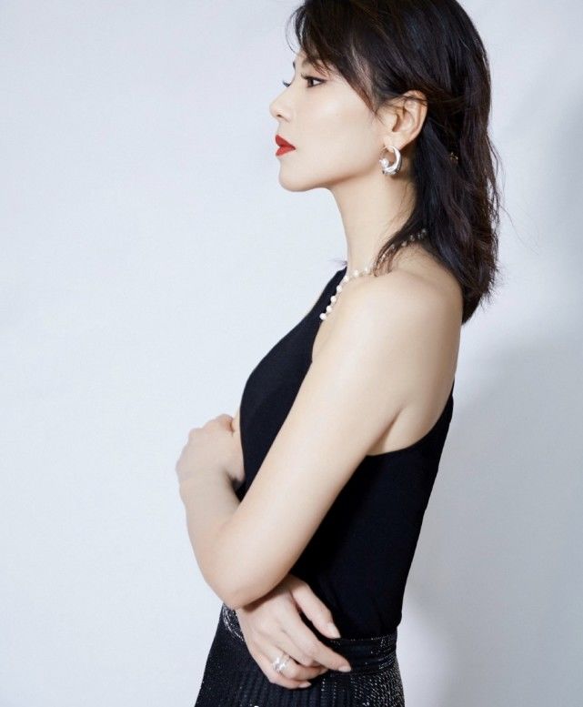 这一次刘涛选择了一身黑衣,这一套纯黑色的服装,虽然猛的看上去觉得非常简单,但其实仔细看也是暗藏玄机,尤其是刘涛在纯黑色的西装外套里面搭配的这一件打底的背心,虽然看上去很普通,但其实这件黑色的紧身背心也是暗藏着不少的小细节的设计,首先在肩膀之处,这件黑色的紧身背心在领口处是斜肩的设计,这样上身以后就明显的看到刘涛完美又好看的肩膀,颈部刚好还搭配了一条珍珠的项链,看上去既有装饰性又不会特别的单调。